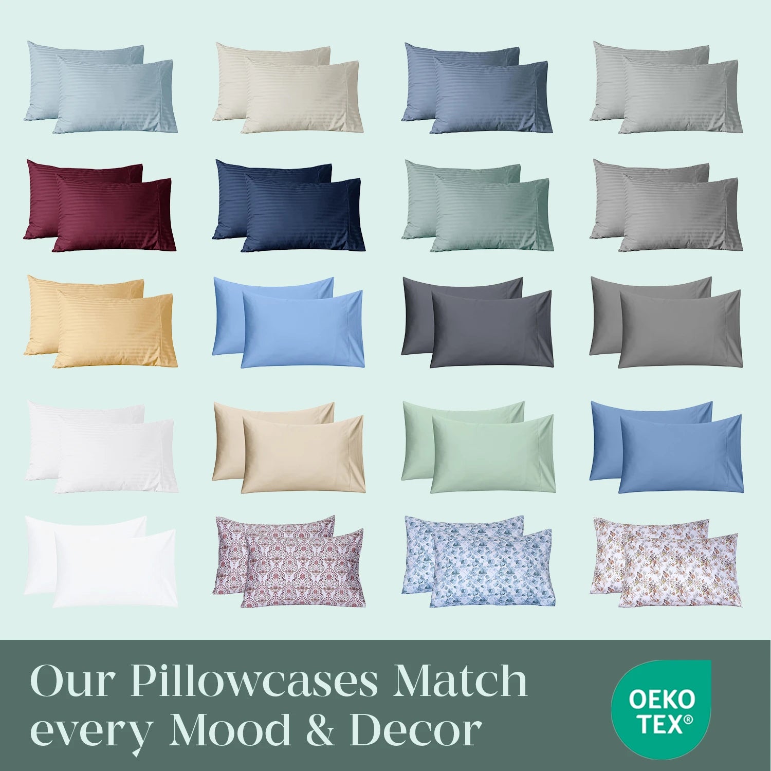 - Indulge in five-star comfort at home with our 500 thread count pillowcases, featuring a damask stripe sateen weave. Their cool, breathable design, unlike microfiber, ensures comfort in any climate. A neat envelope closure and durable, no-fray construction provide a perfect fit for both standard and queen-sized pillows.