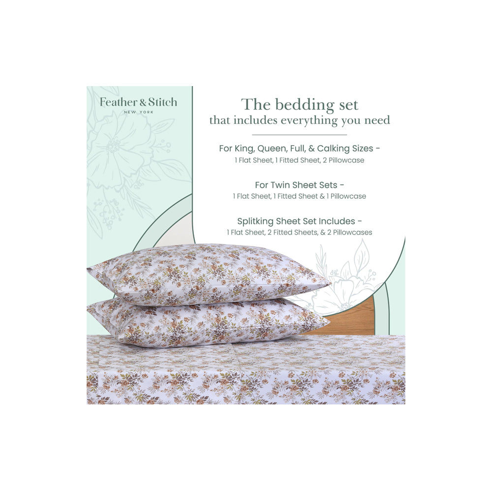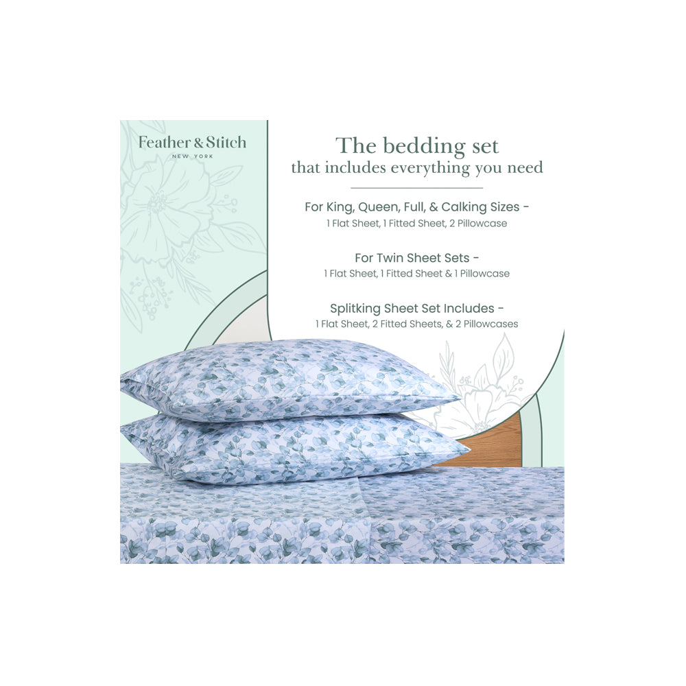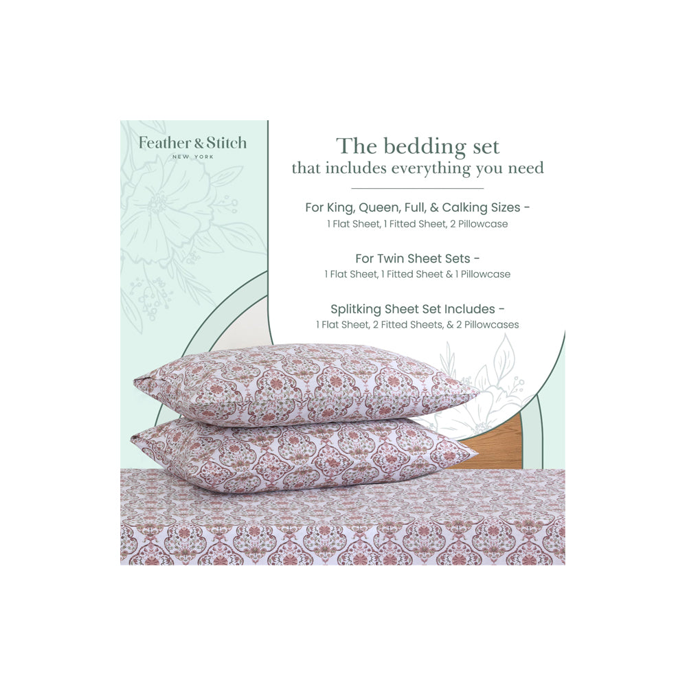 - Each 500 thread count bed sheets set includes a fitted sheet with 18" extra deep pockets, a flat sheet, and envelope closure pillow cases. These sets are available in exquisite prints and solid colors to complement any aesthetic and bedroom décor, also making them a perfect gift for friends and family.