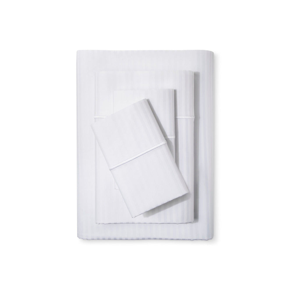 - Each 500 thread count bed sheet set includes a fitted sheet with 18" extra deep pockets, a flat sheet, and envelope closure pillow cases. These sets are available in premium damask stripe and solid white colors to complement any aesthetic and bedroom décor, also making them a perfect gift for friends and family.